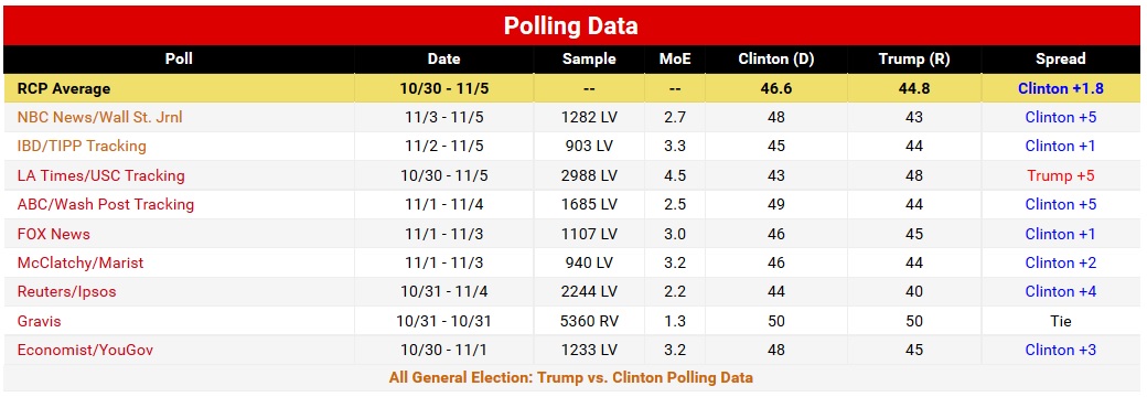 In closing, I expect Trump to cause many liberals to wake up with wet beds come Wednesday morning, because Trump is going to win by 3 to 5 points over Hillary, and probably win 300 or more electoral college votes to win in an easy victory. Get ready for the hand wringing of the MSM as they try to figure how they could possibly be wrong. Gee, maybe it’s their skewed polls that threw them off. Ya Think?