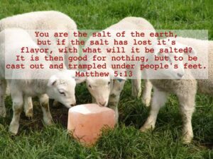He told me the salt helps his cows replenish minerals they need for proper digestion that they don’t get from grazing in his pasture. The more I study the life of Jesus Christ the more I appreciate his parables and analogies and man the analogy at the top of this posting from Matthew 5 is a great one.