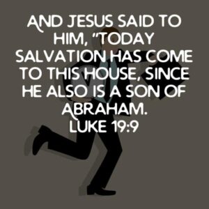 Luke ends with, “And Jesus said to him, “Today salvation has come to this house, because he also is a son of Abraham; for the Son of Man has come to seek and to save that which was lost.” (NKJV)