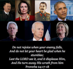As we watch the way the Democrats attack every good thing, while upholding and rewarding all evil, it is natural to desire the day they fall. Yet when that day comes, and it surely will, remember not to celebrate nor rejoice. Instead consider what Solomon wrote in Proverb 24:17-18;